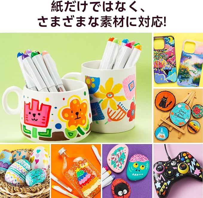 ✿様々な素材に対応: 紙、キャンバス、石、木材、ガラス、セラミック、布、金属他。幅広い素材に対応しており、自由なアート表現を楽しむことができます。 (▲注意:紙以外の素材、特に布やプラスチックなどは、材質により乾くまで時間がかかる場合があります。完全に乾くまでお手を触れずにお待ち下さい。)