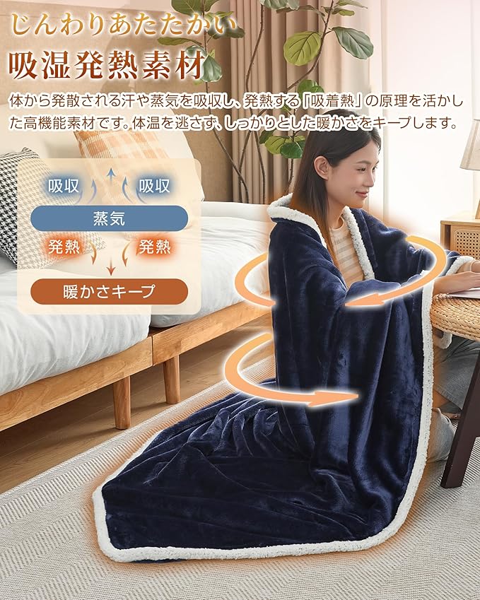 【腕出しOK!作業もあたたか快適】前面にスリット(開口部)があり、ブランケットを羽織ったまま腕を出してスマホ操作やパソコン作業が可能。冷えから守りつつ、家事やデスクワーク、読書もスムーズにこなせます。“着る毛布”感覚で動きやすく、長時間使ってもずれにくい工夫付き。