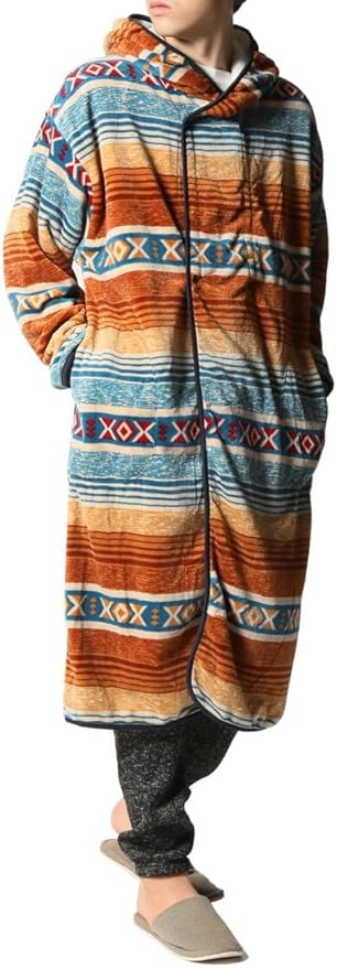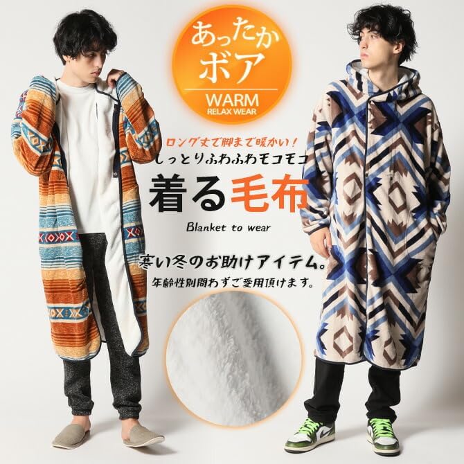 [アーケード] 着る毛布 メンズ レディース 男女兼用 ルームウェア 冬 もこもこ マイクロべロア ガウン フリース ネイティブ柄 カーディガン あったか おしゃれ 秋冬 寝具