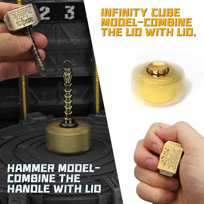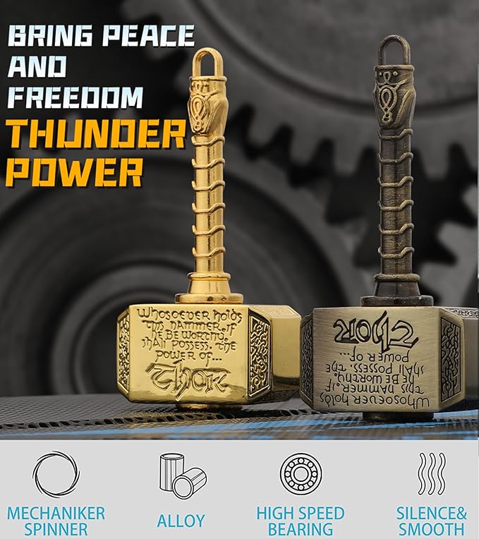 ハンドスピナー ベアリング Thor Hammer Fidget Spinners ステンレススチール ギアスピナー キューブ 指先 回転コマ 2 Pack ストレス解消 EDC ADHD 暇つぶし 脳トレ 子供大人用のおもちゃ (Gold and Bronze)6歳以上に適しています
