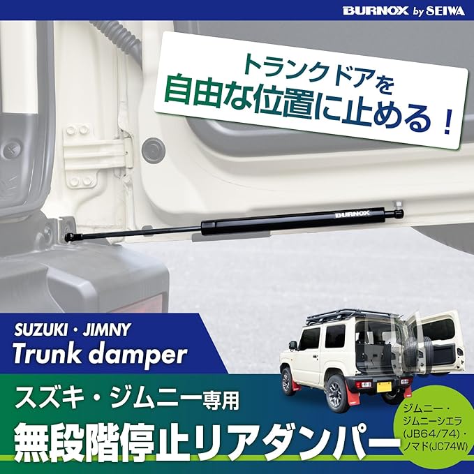 セイワ(SEIWA) 車種専用用品 スズキ ジムニー&シエラ&ノマド(JB64/JB74/JC74)専用 バックドアダンパー 自由停止 途中止まり IMP390 開閉 アシスト トランクダンパー リアハッチダンパー フリーストップ機能 ジムニーアクセサリー 自由的にドア固定 ドアパンチ対策 車検対応 純正交換 (ブラック) JIMNY NOMADE にも対応